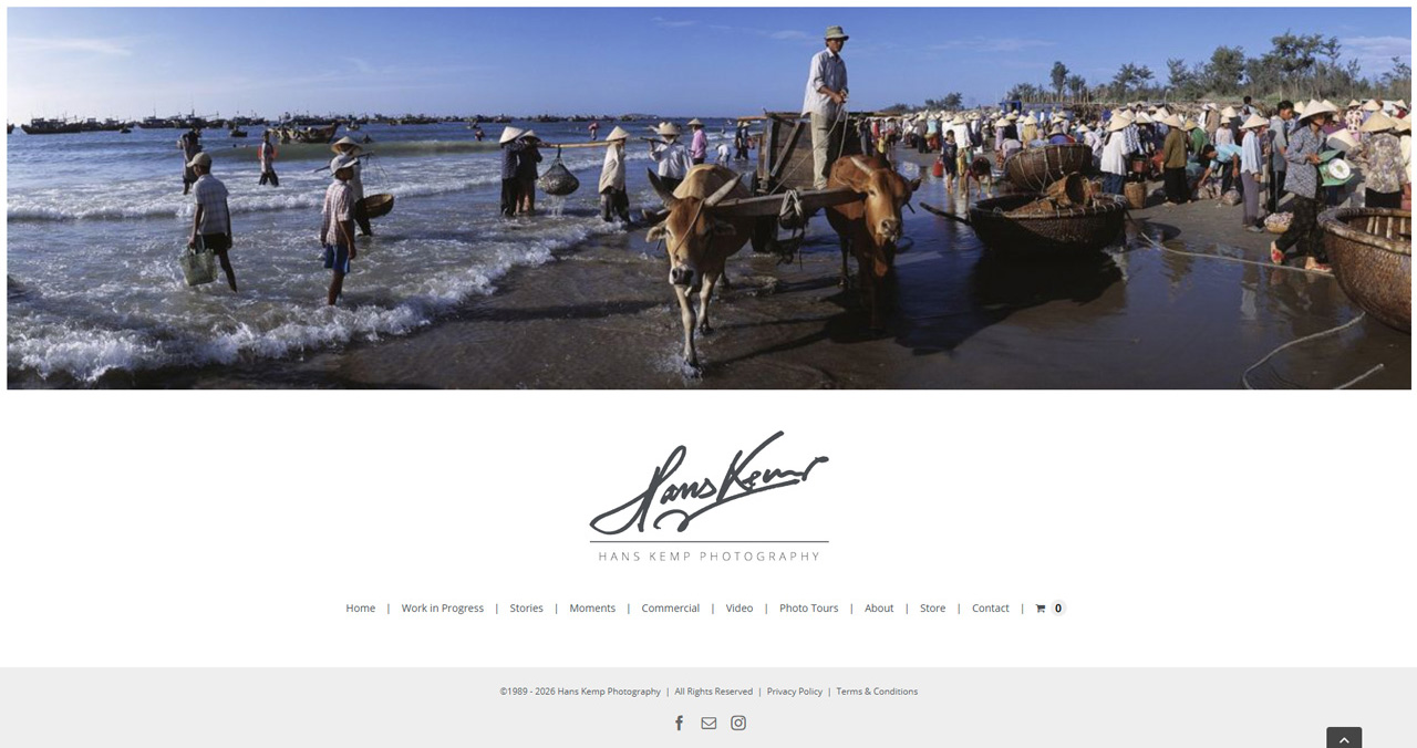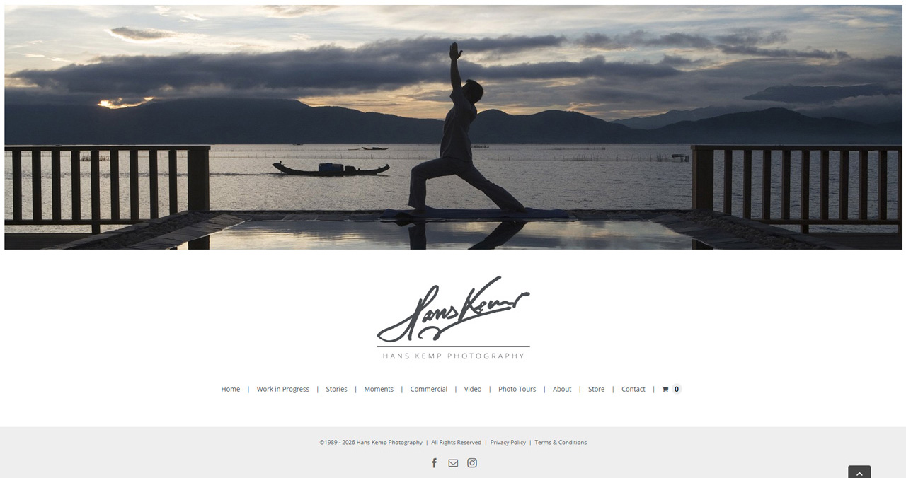 A custom WordPress portfolio website designed and developed for photographer Hans Kemp, built to present large-format photography, editorial stories, books, prints, and commercial work through a clean, immersive browsing experience.
